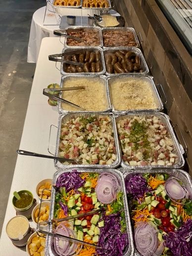 Glow Slaw | Corn Salad | Broccoli Salad | Mango Cucumber Quinoa | Red Beans & Rice | BBQ Beans | Black Eyed Peas w/ Collards | Roasted Garlic Herb Mashed Potatoes | Mixed Greens | Mediterranean Orzo Salad | "Smackaroni" & Cheese